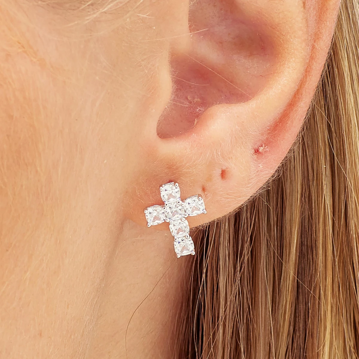 Strieborná náušnice krížik. Náušnica je vyrobená zo striebra rýdzosti 925/1000 a osadená prvotriednymi zirkónmi. Povrch náušnice je porhodiovaný. Nanesené ródium dodáva náušnici jasnú farbu s leskom a zaisťuje jej dlhodobý bezchybný vzhľad. Náušnicové zapínanie je kĺbové. Uvedená cena platí za jednu náušnicu.