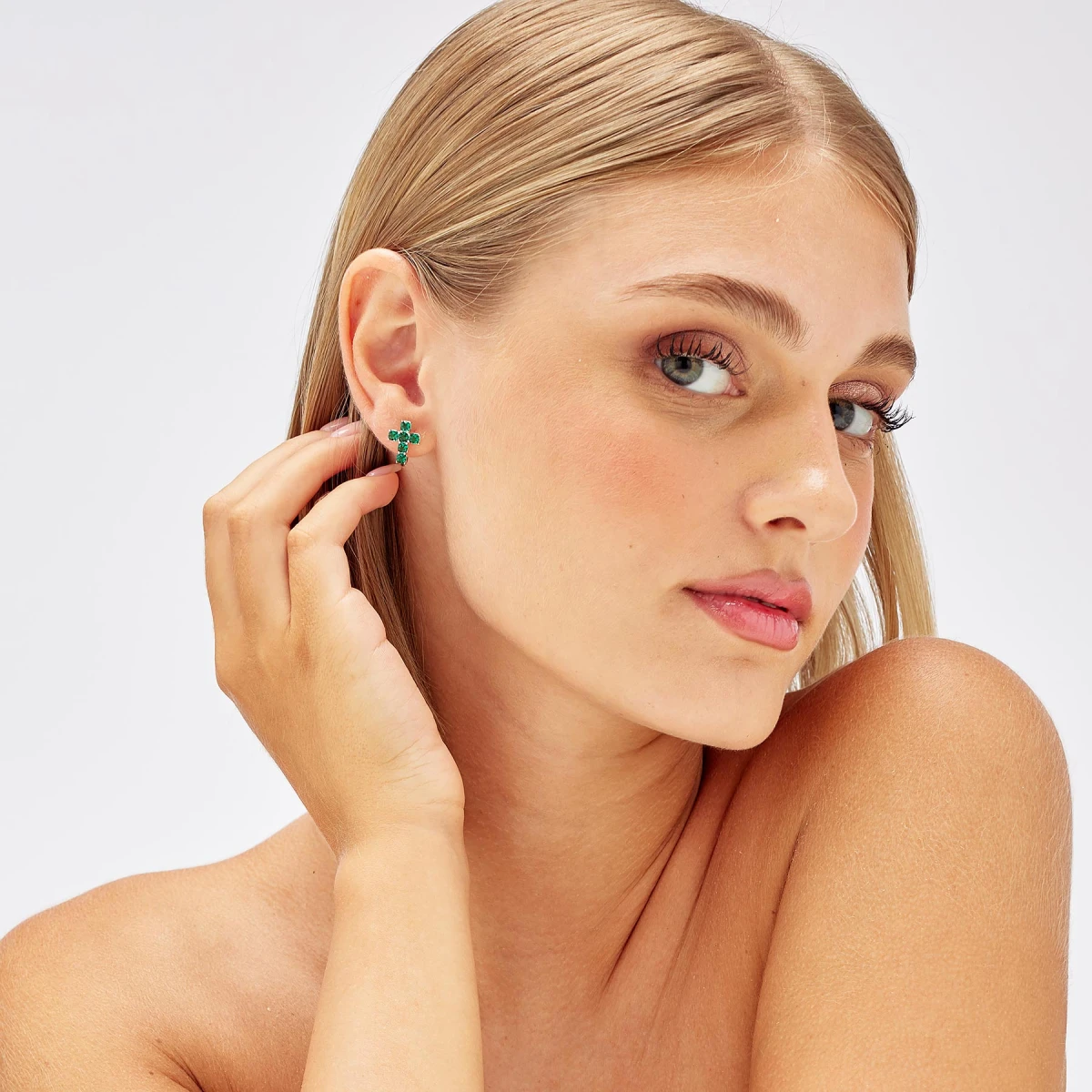Strieborná náušnice krížik. Náušnica je vyrobená zo striebra rýdzosti 925/1000 a osadená prvotriednymi zirkónmi. Povrch náušnice je porhodiovaný. Nanesené ródium dodáva náušnici jasnú farbu s leskom a zaisťuje jej dlhodobý bezchybný vzhľad. Náušnicové zapínanie je kĺbové. Uvedená cena platí za jednu náušnicu.
