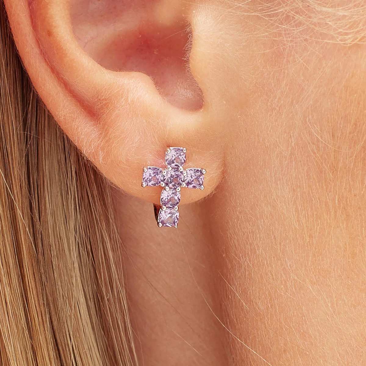 Strieborná náušnice krížik. Náušnica je vyrobená zo striebra rýdzosti 925/1000 a osadená prvotriednymi zirkónmi. Povrch náušnice je porhodiovaný. Nanesené ródium dodáva náušnici jasnú farbu s leskom a zaisťuje jej dlhodobý bezchybný vzhľad. Náušnicové zapínanie je kĺbové. Uvedená cena platí za jednu náušnicu.