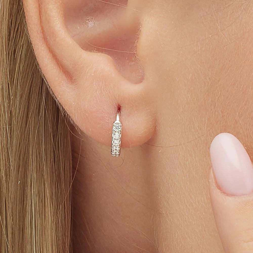Náušnice so zirkónmi krúžok. Náušnica je vyrobená zo striebra rýdzosti 925/1000, osadená prvotriednymi zirkónmi. Povrch náušnice je porodiovaný. Nanesené rodium dodáva náušnici jasnú farbu s leskom, súčasne chráni jej povrch pred poškriabaním a zaručuje náušnici dlhodobý bezchybný vzhľad. Náušnicové zapínanie je kĺbové. Táto náušnica sa predáva po jednom kuse.