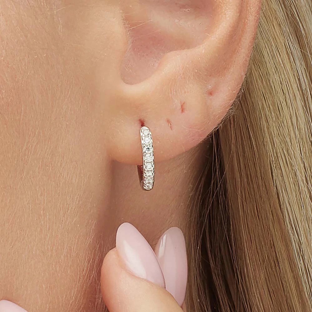 Náušnice so zirkónmi krúžok. Náušnica je vyrobená zo striebra rýdzosti 925/1000, osadená prvotriednymi zirkónmi. Povrch náušnice je porodiovaný. Nanesené rodium dodáva náušnici jasnú farbu s leskom, súčasne chráni jej povrch pred poškriabaním a zaručuje náušnici dlhodobý bezchybný vzhľad. Náušnicové zapínanie je kĺbové. Táto náušnica sa predáva po jednom kuse.