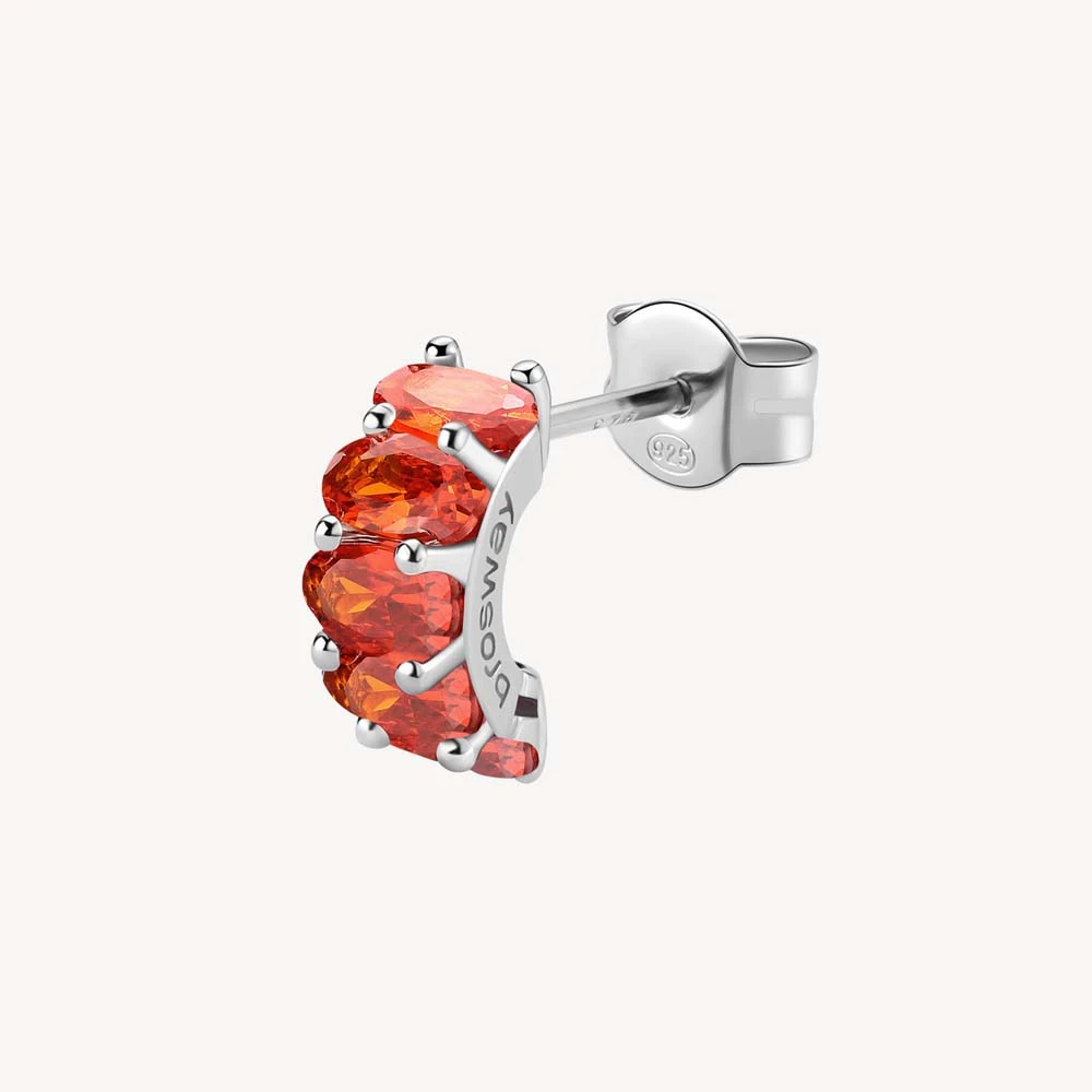 Strieborná náušnice polokrúžok. Náušnica je vyrobená zo striebra rýdzosti 925/1000 a osadená prvotriednymi zirkónmi. Povrch náušnice je porhodiovaný. Nanesené ródium dodáva náušnici jasnú farbu s leskom a zaisťuje jej dlhodobý bezchybný vzhľad. Náušnicové zapínanie je na puzetku. Uvedená cena platí za jednu náušnicu.