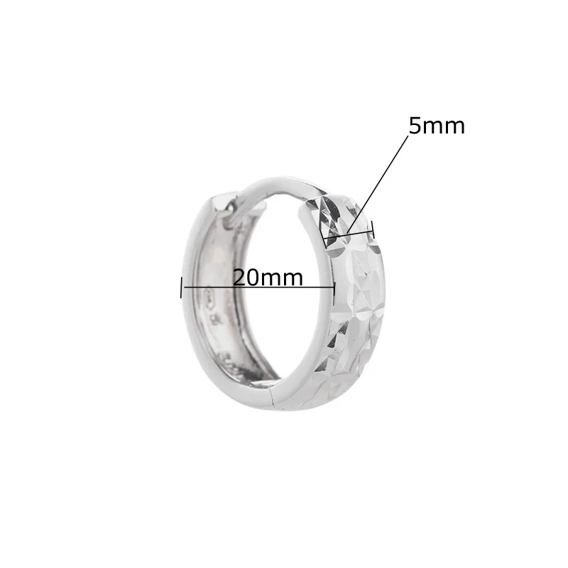 Náušnice kruhy vyrobené z kvalitného striebra 925/1000. Povrch náušníc je kombinácia mat/lesk. Náušnice sú navyše porhodiované, čo im dodáva jasnú farbu s leskom, potláča prirodzenú oxidáciu striebra, zvyšuje odolnosť povrchu proti poškriabaniu a zaručuje dlhodobý bezchybný vzhľad náušníc. Náušnice sú široké 5mm, vonkajší priemer náušníc 20mm. Náušnicové zapínanie je kĺbové.
