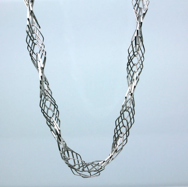 Náhrdelník pre ženy so zapínaním na karabínu. Povrch náhrdelníka je rodiovaný so vzorom. Nanesenej rodium dáva náhrdelníka krásnu farbu a lesk. Náhrdelník má karabínové zapínanie. Šírka 8mm.