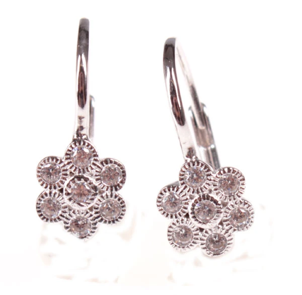 Strieborné náušnice s kamienkami v tvare kvietkov. Priemer kvietkov 8mm. Rozmer náušníc 17×11mm. Zapínanie na striebornú klapku.
