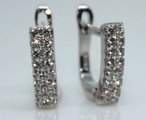 Dámske náušnice so zirkónmi vyrobené zo striebra 925/000. Náušnice majú porhodiovaný povrch. Nanesenej ródium dodáva naušnicím jasnú farbu a lesk. Rozmer náušníc 11x3,5x10mm. Náušnicové zapínanie má rozmer 7x7mm.