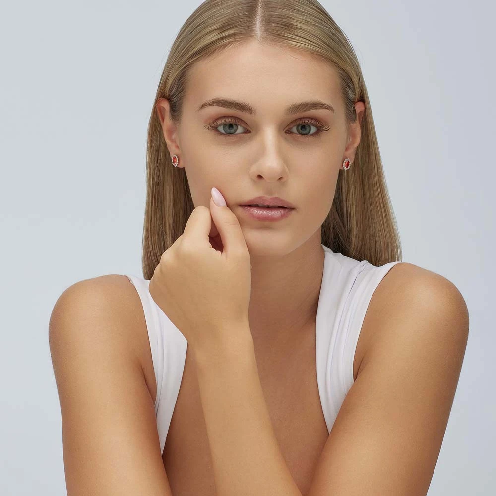 Strieborné náušnice kôstky. Náušnice sú vyrobené zo striebra rýdzosti 925/1000 a sú osadené prvotriednymi zirkónmi. Povrch náušníc je porodiovaný. Nanesené rodium dodáva náušniciam jasnú farbu s leskom, súčasne chráni ich povrch pred poškriabaním a zaručuje náušniciam dlhodobý bezchybný vzhľad. Náušnicové zapínanie je na puzetky.
