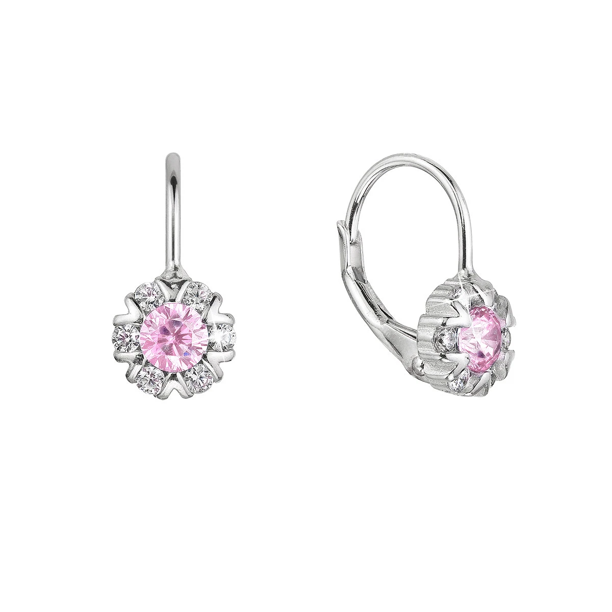 Strieborné náušnice detské okrúhle so zirkónmi 11474.3 rose