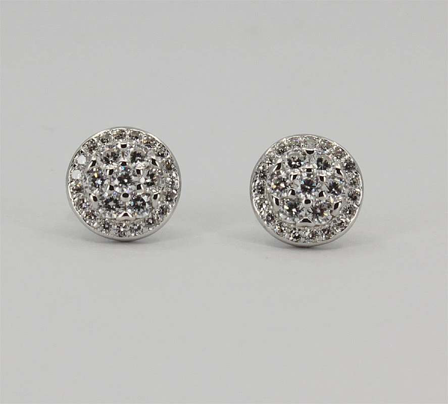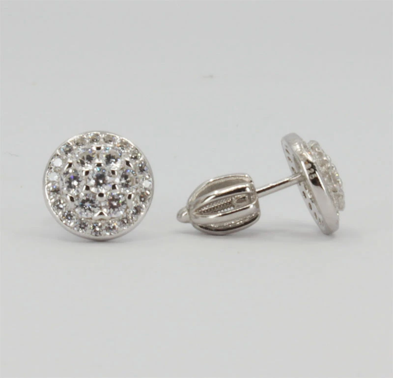 Strieborné náušnice kôstky na skrutku. Náušnice sú vyrobené zo striebra rýdzosti 925/000. Povrch náušníc porhodiovaný ozdobený prvotriednymi zirkónmi. Úprava rhodiovaním dodáva náušniciam jasnú farbu s leskom, zvyšuje odolnosť povrchu proti poškriabaniu a zamedzuje prirodzenej oxidácii striebra, náušnice tak budú mať po dlhú dobu bezchybný vzhľad. Priemer náušníc 8mm. Náušnicové zapínanie je na praktickú skrutku.