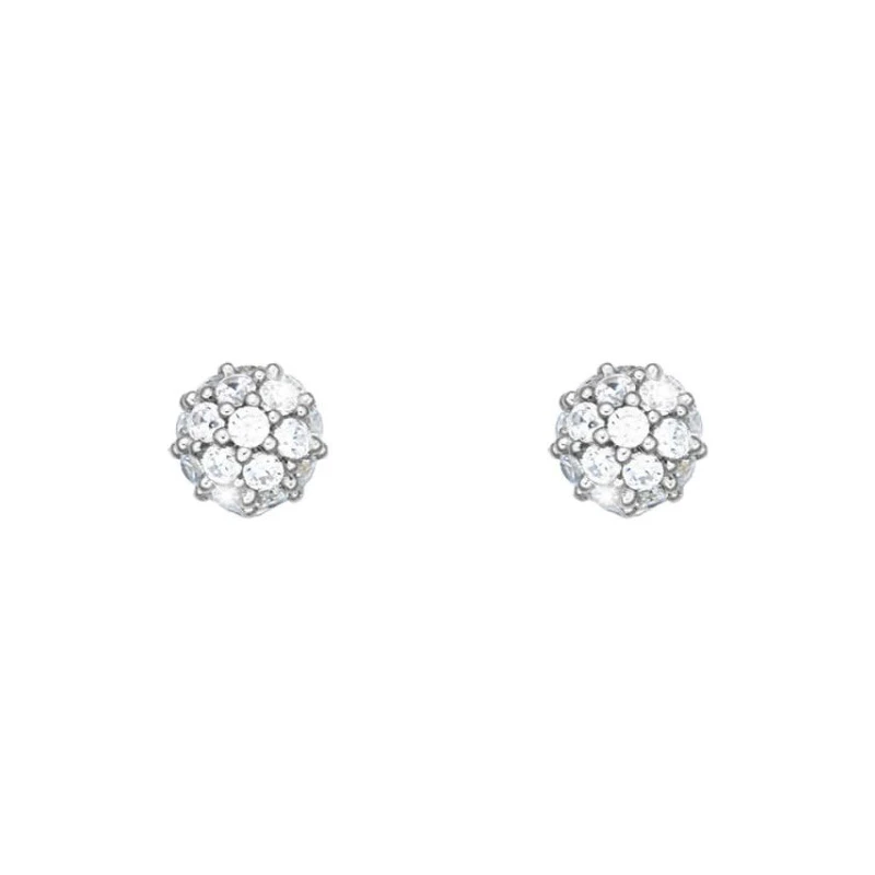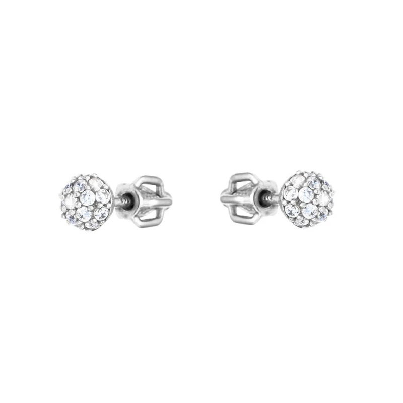 Strieborné náušnice kôstky na skrutku. Náušnice sú vyrobené zo striebra rýdzosti 925/000. Povrch náušníc porhodiovaný ozdobený prvotriednymi zirkónmi. Úprava rhodiovaním dodáva náušniciam jasnú farbu s leskom, zvyšuje odolnosť povrchu proti poškriabaniu a zamedzuje prirodzenej oxidácii striebra, náušnice tak budú mať po dlhú dobu bezchybný vzhľad. Priemer náušníc 5 mm. Náušnicové zapínanie je na praktickú skrutku.