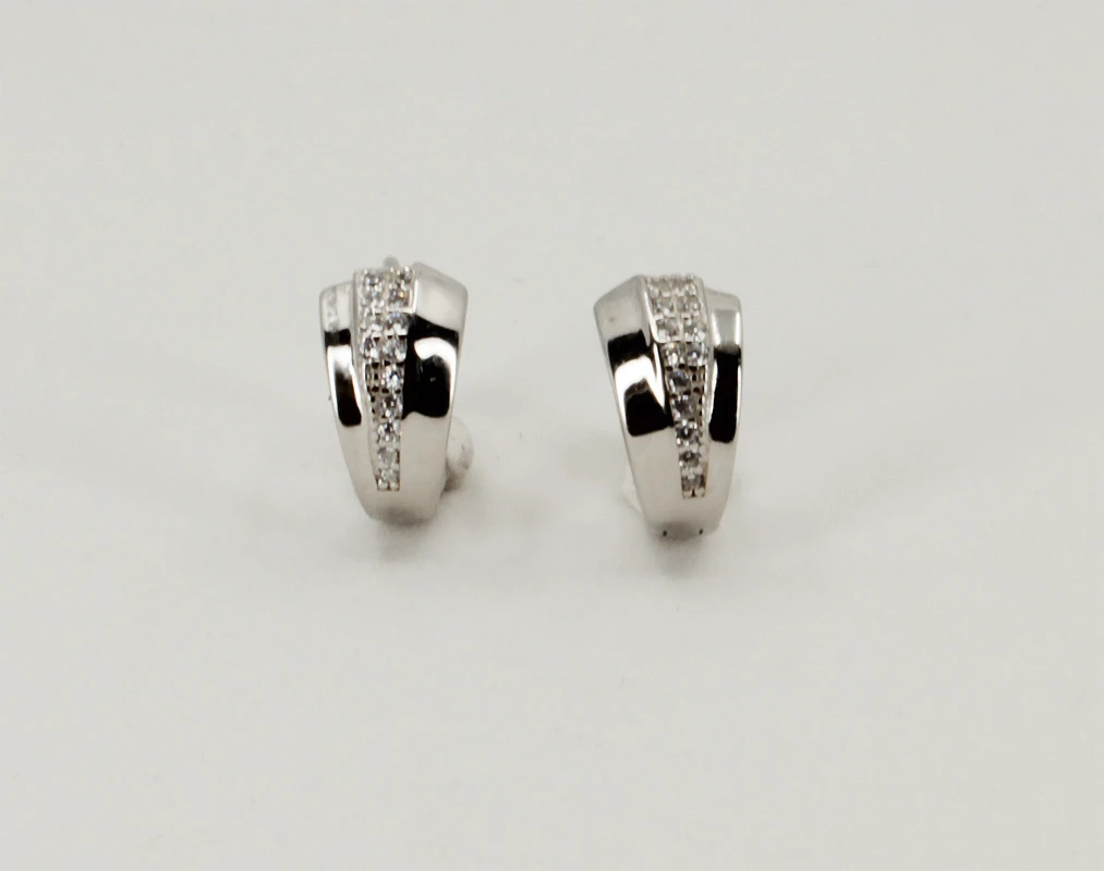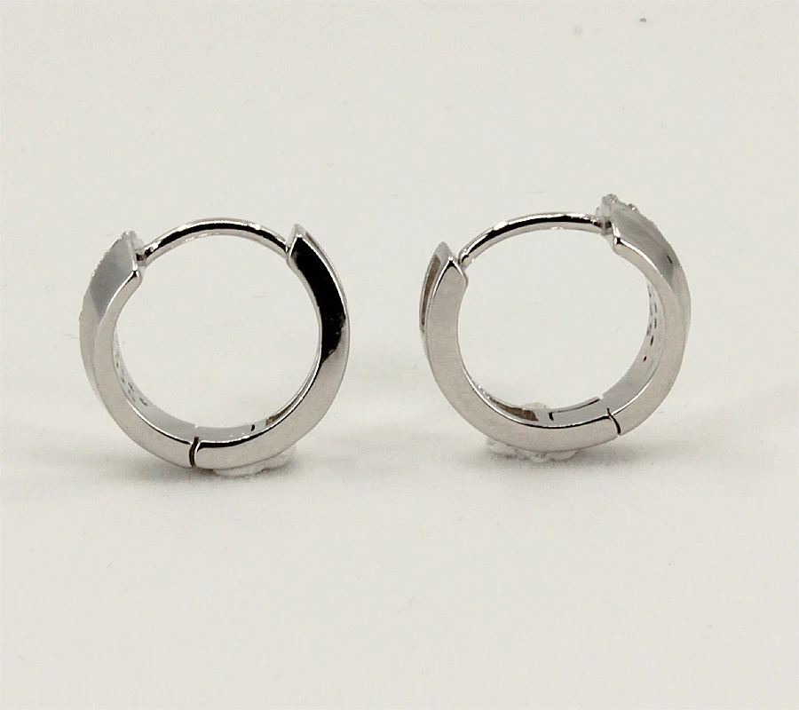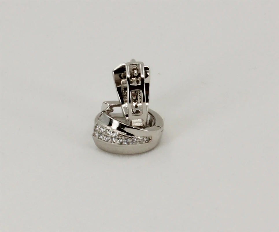 Náušnice krúžky vyrobené z kvalitného striebra 925/1000. Náušnice sú osadené prvotriednymi zirkónmi. Povrch náušníc je porhodiovaný, čo im dodáva jasnú farbu s leskom, potláča prirodzenú oxidáciu striebra, zvyšuje odolnosť povrchu proti poškriabaniu a zaručuje dlhodobý bezchybný vzhľad náušníc. Náušnice sú široké 7mm, vonkajší priemer náušníc 14mm. Náušnicové zapínanie je kĺbové.