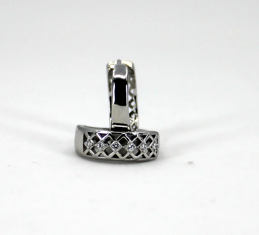 Náušnice krúžky vyrobené z kvalitného striebra 925/1000. Náušnice sú osadené prvotriednymi zirkónmi. Povrch náušníc je porhodiovaný, čo im dodáva jasnú farbu s leskom, potláča prirodzenú oxidáciu striebra, zvyšuje odolnosť povrchu proti poškriabaniu a zaručuje dlhodobý bezchybný vzhľad náušníc. Náušnice sú široké 5mm, vonkajší priemer náušníc 15mm. Náušnicové zapínanie je kĺbové.