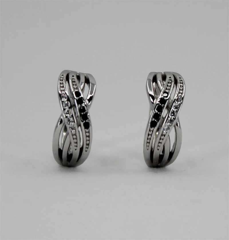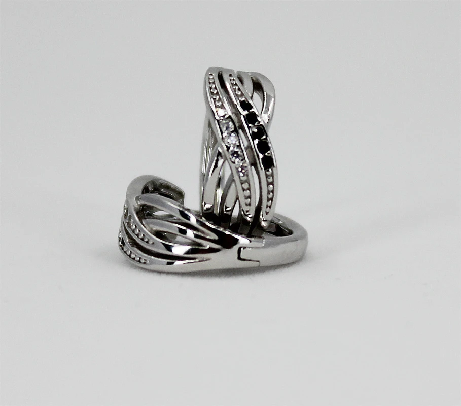 Náušnice krúžky vyrobené z kvalitného striebra 925/1000. Náušnice sú osadené prvotriednymi zirkónmi. Povrch náušníc je porhodiovaný, čo im dodáva jasnú farbu s leskom, potláča prirodzenú oxidáciu striebra, zvyšuje odolnosť povrchu proti poškriabaniu a zaručuje dlhodobý bezchybný vzhľad náušníc. Náušnice sú široké 5mm, vonkajší priemer náušníc 15mm. Náušnicové zapínanie je kĺbové.