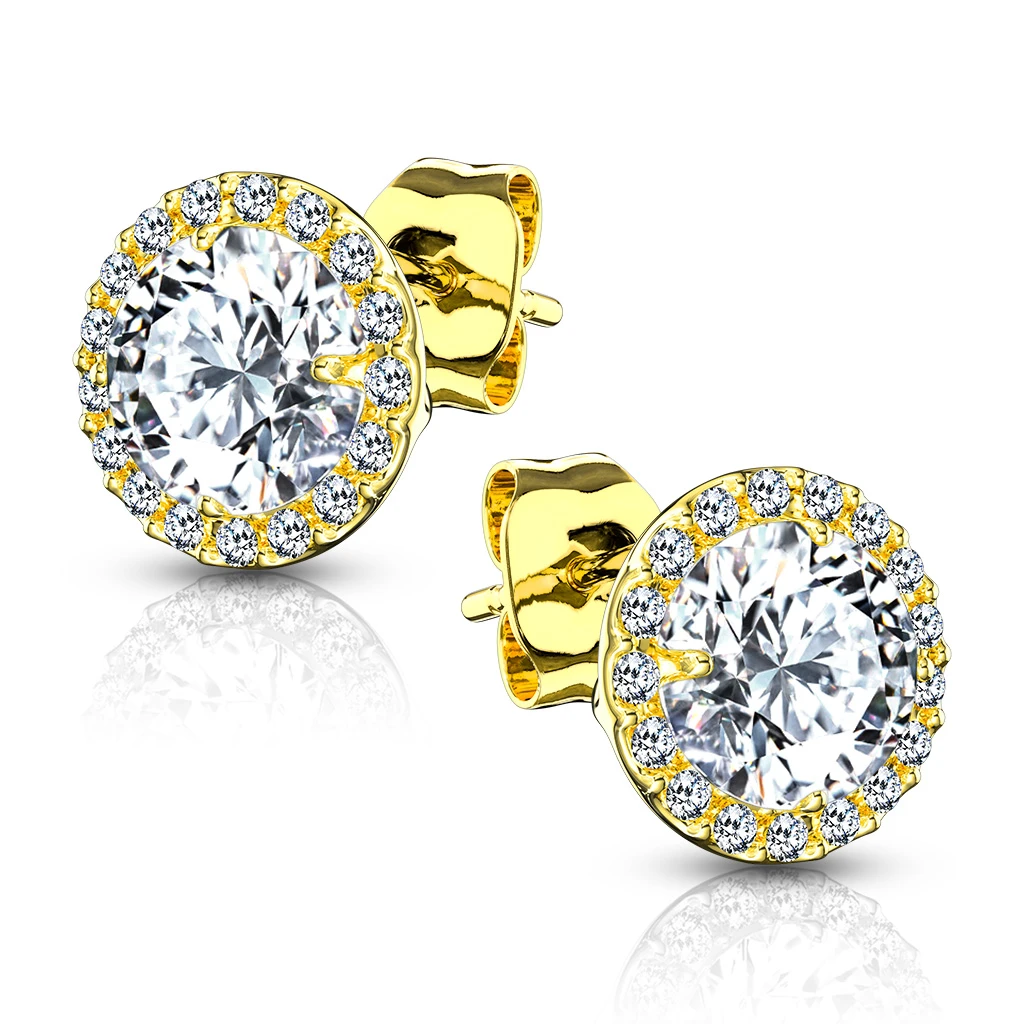 Pozlátené strieborné náušnice so zirkónmi kôstky. Náušnicové zapínanie je na puzetky. Pozlátený povrch dodáva náušniciam luxusný vzhľad. Priemer ozdobné časti náušníc 7mm.