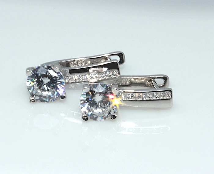 Dámske náušnice so zirkónmi vyrobené za striebra 925/000. Všetky strieborné náušnice a ostatné strieborné šperky ponúkané v našom e-shope sú označené a opuncovány podľa puncového zákona.