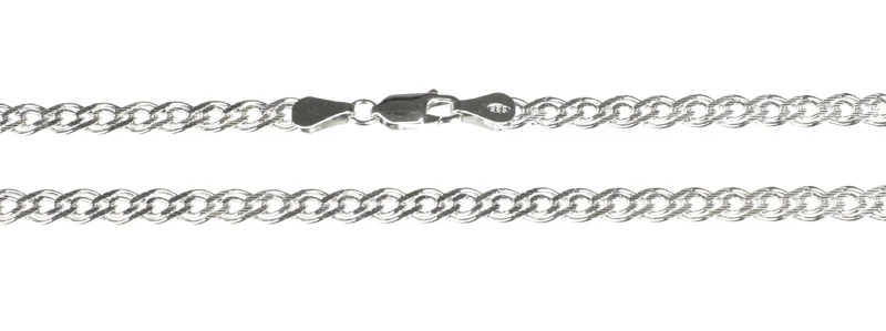 Retiazka striebro 925/000. Povrch retiazky je porhodiovaný. Nanesenej ródium dáva retiazky žiarivú farbu a lesk. Retiazka sa zapína pomocou karabíny, šírka 5mm.