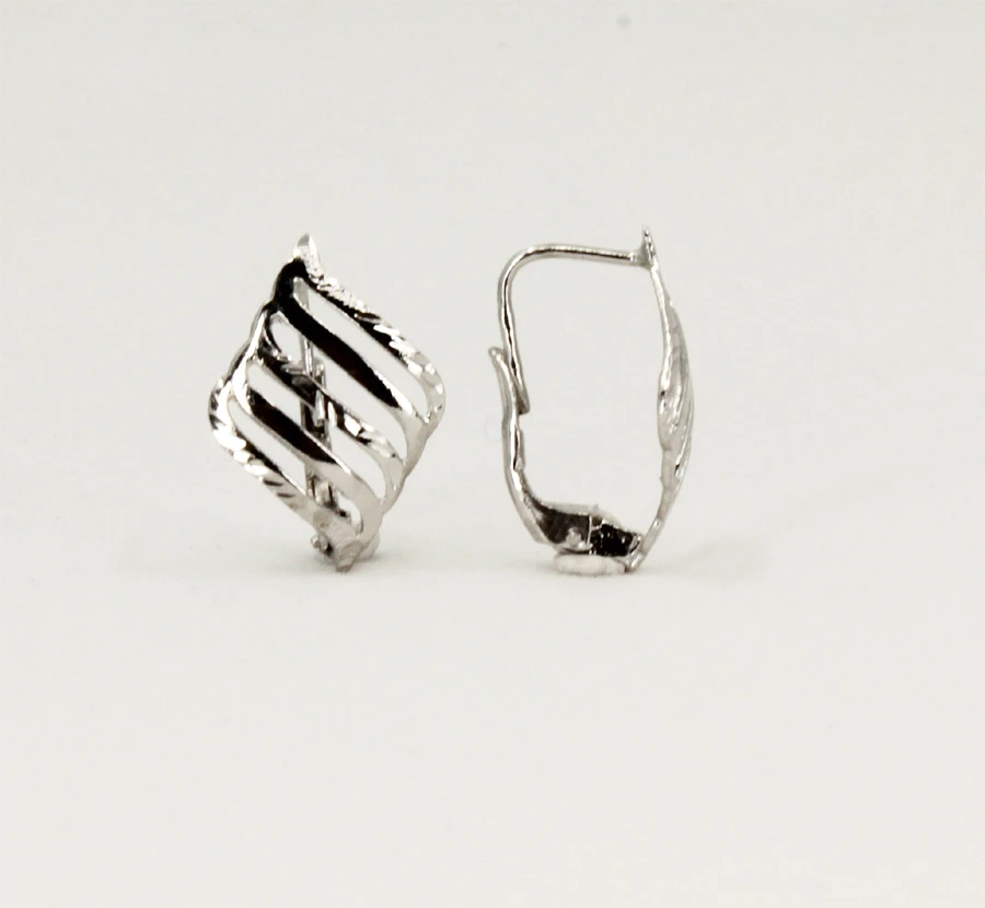 Visiace náušnice vyrobené zo striebra 925/1000. Povrch náušníc je porhodiovaný, čo dodáva náušniciam jasnú farbu s leskom a zaručuje ich dlhodobý bezchybný vzhľad. Rozmer náušníc 18x12mm. Náušnicové zapínanie je na klapku.