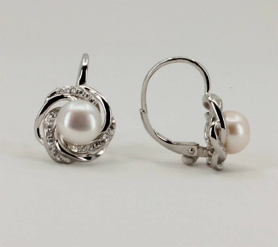 Perlové visiace náušnice zo striebra 925/1000. Krásne visiace náušnice, ktorým perly dodávajú nádych luxusu a elegancie. Náušnice sa hodia ako na slávnostnú príležitosť tak na bežné každodenné nosenie. Vďaka kvalitnému striebra a nanesenému ródiu budú tieto náušnice dlho krásne a budú vám robiť radosť. Strieborné perlové náušnice môžu byť krásnym darčekom pre Vašich blízkych a určite potešia každú ženu. Neváhajte a urobte radosť sebe, alebo svojim blízkym s našimi náušnicami.