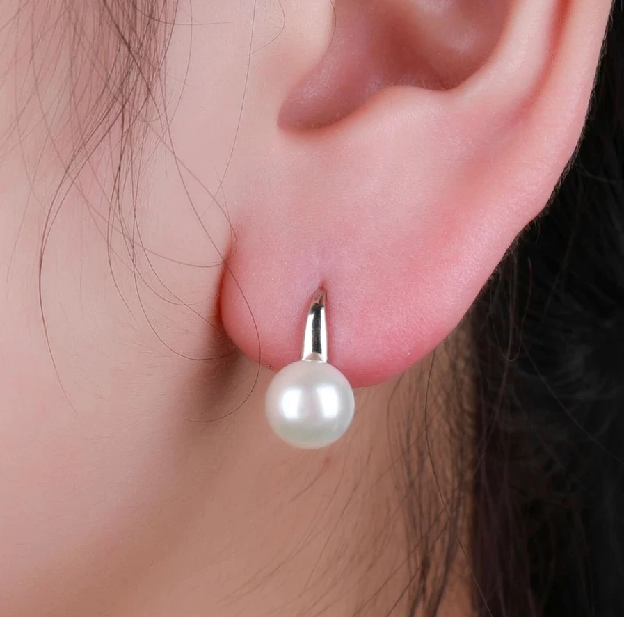 Strieborné visiace náušnice s perlami. Náušnice sú vyrobené zo striebra 925/1000 a sú osadené prírodnými perlami. Povrch náušníc je pokovovaný ródiom. Nanesené ródium dodáva náušniciam žiarivú farbu s leskom a zároveň zabezpečuje dlhotrvajúci bezchybný vzhľad náušníc. Zapínanie náušníc je na klapku Rozmery náušníc 16x9 mm nájdete na sprievodnej fotografii.