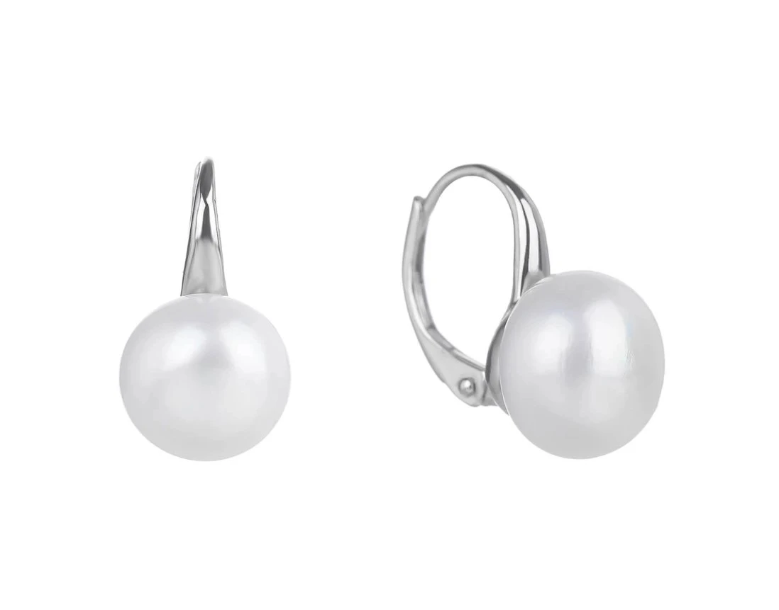 Strieborné visiace náušnice s riečnymi perlami. Náušnice sú vyrobené zo striebra 925/1000 a sú osadené prírodnými riečnymi perlami. Povrch náušníc je pokovovaný ródiom. Nanesené ródium dodáva náušniciam žiarivú farbu s leskom a zároveň zabezpečuje dlhotrvajúci bezchybný vzhľad náušníc. Zapínanie náušníc je na klapku. Rozmery náušníc 16x10 mm nájdete na sprievodnej fotografii.