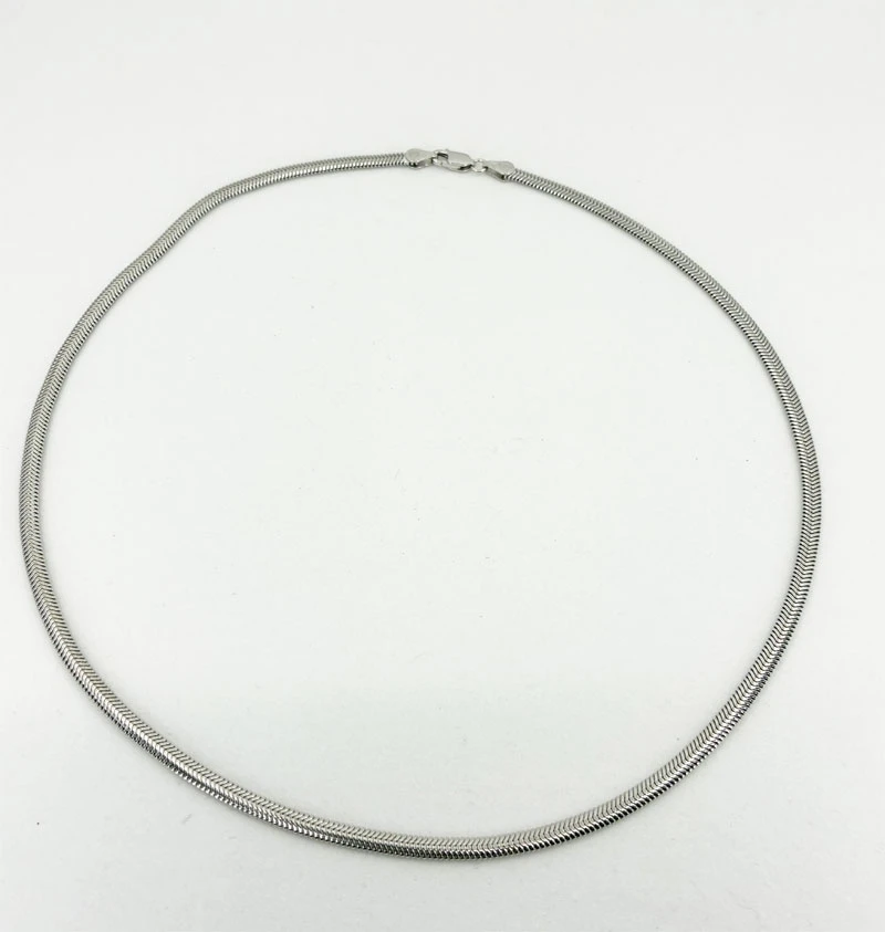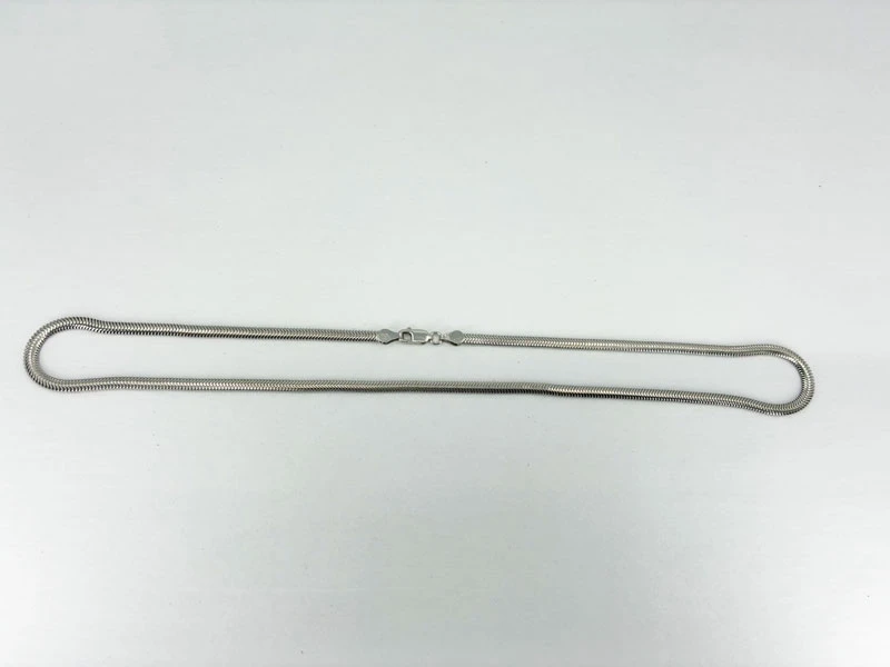 Strieborný náhrdelník typu hádok Na výrobu náhrdelníka bolo použité striebro rýdzosti 925/1000. Povrch náhrdelníka je porhodiovaný. Úprava povrchu ródiom dodáva šperku jasnú farbu s leskom a zaručuje dlhodobý bezchybný vzhľad šperku. Zapínanie náhrdelníka je karabínové, dĺžku náhrdelníka 45cm, šírka 4mm.