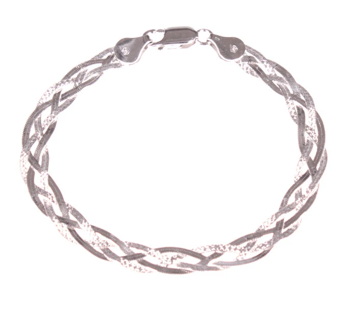Náramok vyrobený zo striebra 925/000. Rhodiovaný povrch dáva náramku luxusný vzhľad a jasnú farbu. Zapínanie je karabínové. Šírka náramku 7mm.