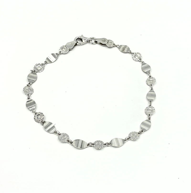 Strieborný náramok na každú príležitosť, či už sa chystáte na večeru, do kancelárie alebo len na kávu s priateľmi, tento náramok perfektne doplní akýkoľvek outfit. Vďaka kvalitnému a detailnému spracovaniu je náramok príjemný na nosenie a zároveň dostatočne odolný, aby vydržal každodenné používanie. Zháňate krásny darček pre blízku osobu? Tento strieborný náramok je tou správnou voľbou. Náramok môžete kombinovať so striebornými náhrdelníkmi z našej ponuky. Náhrdelník je samozrejme označený a opuncovaný podľa puncového zákona. Náramok je dodávaný v darčekovej krabičke.