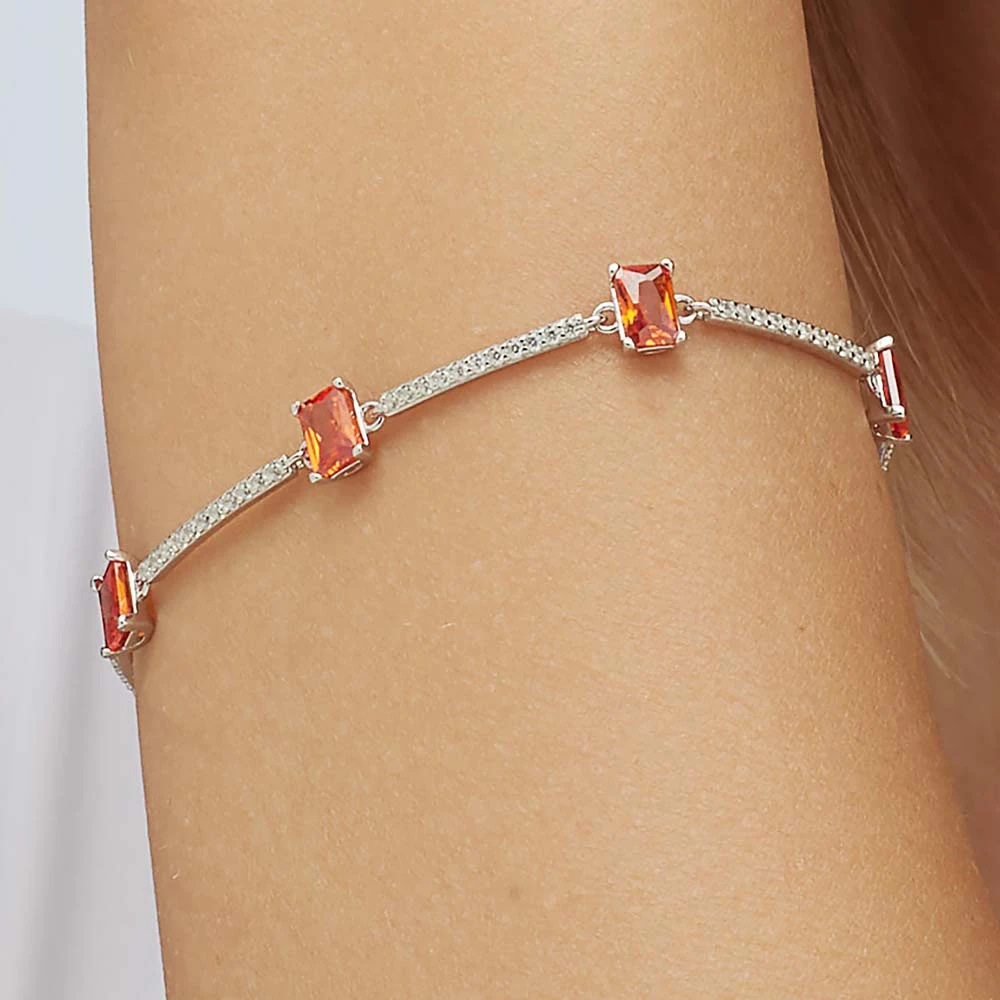 Strieborný náramok osadený prvotriednymi zirkónmi. Náramok je vyrobený zo striebra rýdzosti 925/1000 s porhodiovaným povrchom. Úprava povrchu náramku rhodiovaním zvyšuje jeho odolnosť a zaisťuje dlhodobý bezchybný vzhľad šperku. Zapínanie náramku je karabínové. Dĺžka náramku 16cm.