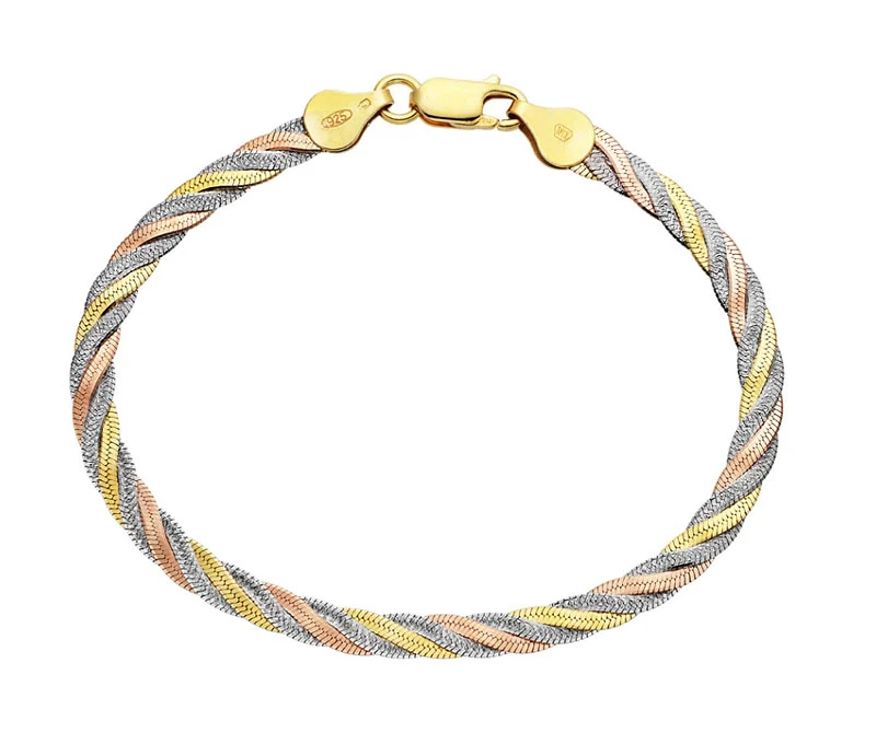 Dámsky strieborný pozlátený náramok zo striebra rýdzosti 925/1000. Náramok je pozlátený žltým a ružovým zlatom, strieborné časti náramku sú porodiované. Úprava povrchu pozlátením a rodiovaním dodáva šperku jasnú farbu s leskom a súčasne zaisťuje dlhodobý bezchybný vzhľad náramku. Zapínanie náramku je na karabínku. Náramok je široký 4mm.