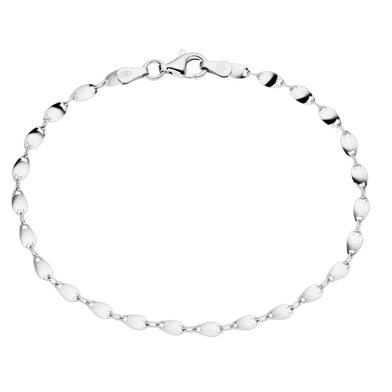Jemný strieborný náramok pre ženy. Náramok je vyrobený zo striebra rýdzosti 925/1000. Povrch náramku je porhodiovaný. Úprava rhodiovaním dodáva náramku jasnú farbu s leskom, chráni povrch náramku proti poškriabaniu náramok tak bude mať dlhú dobu bezchybný vzhľad. Náramok je široký 3,0 mm. Náramok má zapínanie na karabínku.