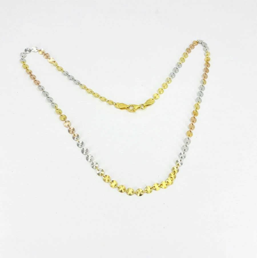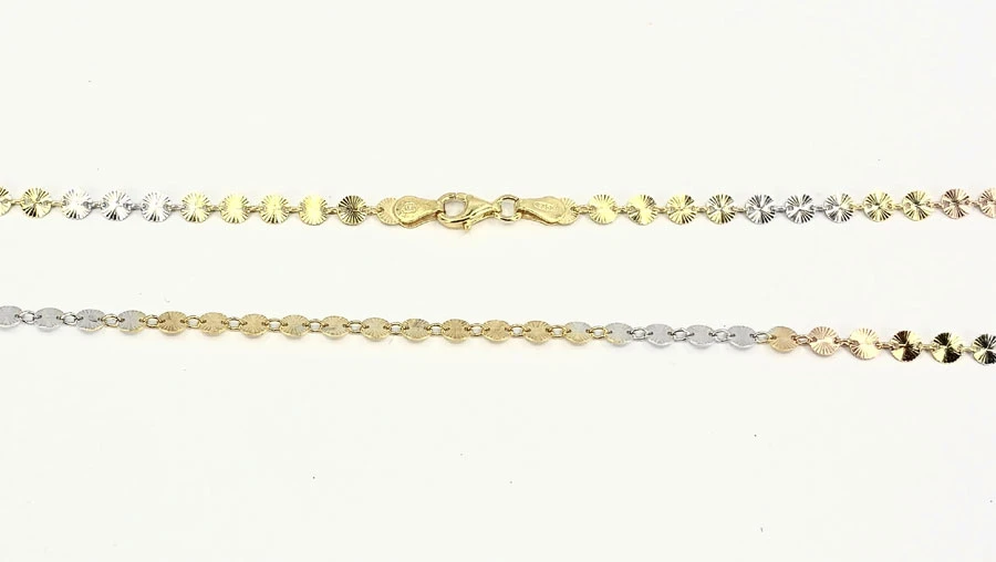 Náhrdelník zo striebra rýdzosti 925/1000. Povrch náhrdelníka je pozlátený a porhodiovaný. Úprava rhodiovaním dodáva náhrdelníku jasnú farbu s leskom, chráni povrch šperku proti poškriabaniu, náhrdelník tak bude mať dlhú dobu bezchybný vzhľad. Pozlátený povrch dodáva hrdelníkovi luxusný vzhľad. Okrúhle články náhrdelníka majú priemer 4mm. Náhrdelník má zapínanie na karabínku.
