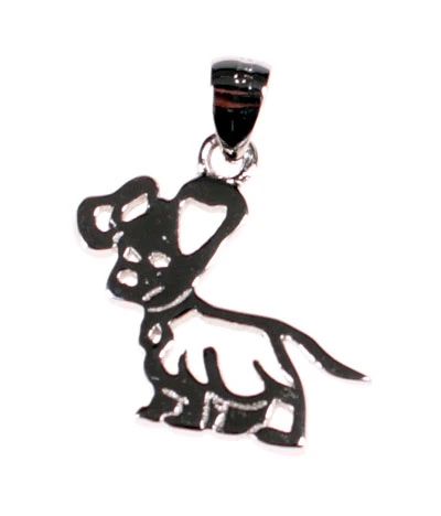 Prívesok na retiazku zo striebra 925/000. Povrch prívesku je porhodiovaný. Rozmer 15×11mm. Očkom na zavesenie prívesku možno pretiahnuť strieborná retiazka s maximálnym priemerom 2,5mm.