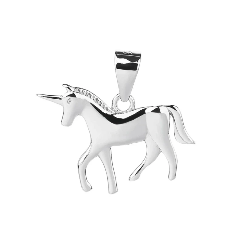 Prívesok na retiazku jednorožec vyrobený zo striebra 925/1000. Povrch prívesku je porhodiovaný. Úprava rhodiovaním dodáva prívesku jasnú farbu s leskom, zvyšuje odolnosť povrchu proti poškriabaniu a zamedzuje prirodzenej oxidácii striebra. Prívesok bude mať po dlhú dobu bezchybný vzhľad. Rozmer jednorožca 16x14 mm. Závesným očkom na prívesku je možné prevliecť striebornú retiazku s priemerom do 3 mm.