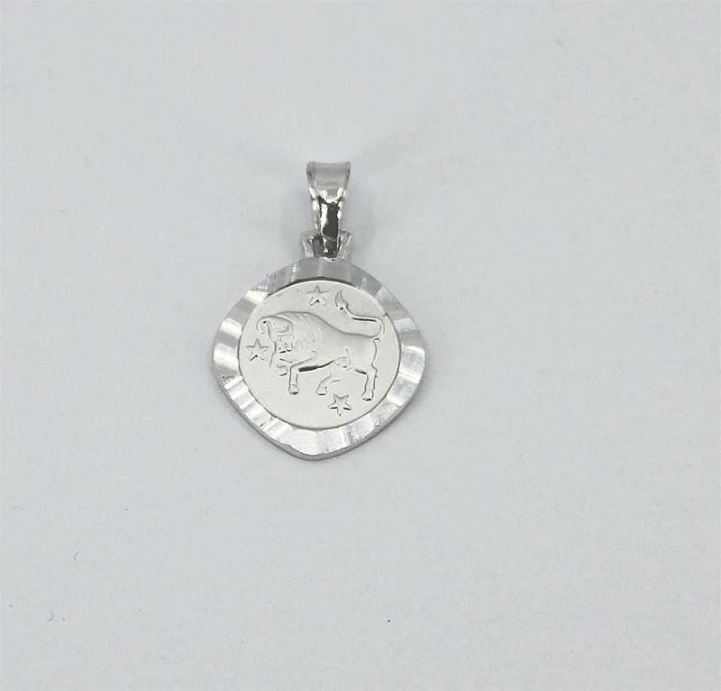 Prívesok na krk so znamením Býk (21.4 - 21.5). Prívesok je vyrobený zo striebra 925/1000. Povrch prívesku je kombinácia mat/lesk, plastické znamenie je matné orámované lešteným okrajom. Prívesok má porhodiovaný povrch. Úprava povrchu rhodiovania dodáva prívesku jasnú farbu s leskom a súčasne zamedzuje prirodzenej oxidácii striebra. Porhodiovaný povrch prívesku je tiež odolnejší voči poškriabaniu, šperk si tak uchová po dlhú dobu bezchybný vzhľad. Závesným očkom na znamenie je možné prevliecť retiazku s priemerom do 3,0mm. Celková "výška" prívesku vrátane závesného oka 20mm, rozmer ozdoby 12x12mm.