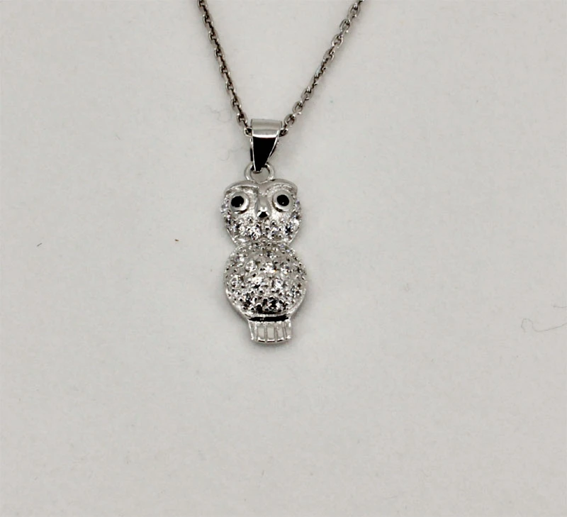 Prívesok v tvare sovy vyrobený zo striebra 925/1000. Povrch prívesku je porhodiovaný. Úprava povrchu rhodiovaním dodáva prívesku jasnú farbu s leskom, zvyšuje odolnosť povrchu proti poškriabaniu, prívesok bude mať po dlhú dobu bezchybný vzhľad. Rozmer prívesku 20x9mm. Závesným očkom na prívesku je možné pretiahnuť retiazku s priemerom do 2,5mm. Vhodnú striebornú retiazku nájdete v kategórii retiazky.