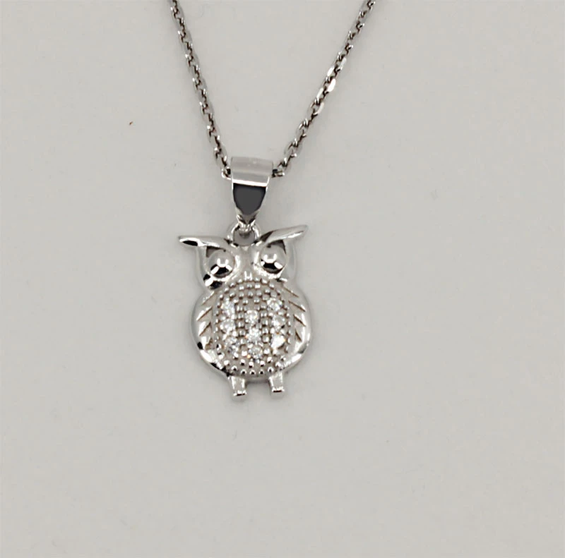 Prívesok v tvare sovy vyrobený zo striebra 925/1000. Povrch prívesku je porhodiovaný. Úprava povrchu rhodiovaním dodáva prívesku jasnú farbu s leskom, zvyšuje odolnosť povrchu proti poškriabaniu, prívesok bude mať po dlhú dobu bezchybný vzhľad. Rozmer prívesku 15x10mm. Závesným očkom na prívesku je možné pretiahnuť retiazku s priemerom do 2,5mm. Vhodnú striebornú retiazku nájdete v kategórii retiazky.