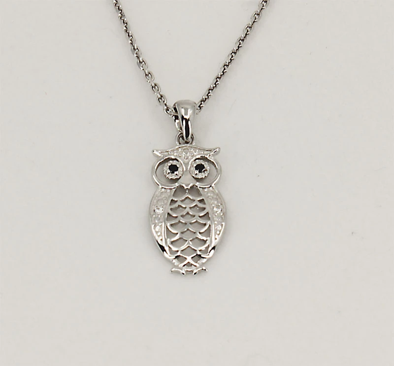 Prívesok v tvare sovy vyrobený zo striebra 925/1000. Povrch prívesku je porhodiovaný. Úprava povrchu rhodiovaním dodáva prívesku jasnú farbu s leskom, zvyšuje odolnosť povrchu proti poškriabaniu, prívesok bude mať po dlhú dobu bezchybný vzhľad. Rozmer prívesku 20x10mm. Závesným očkom na prívesku je možné pretiahnuť retiazku s priemerom do 2,0mm. Vhodnú striebornú retiazku nájdete v kategórii retiazky.
