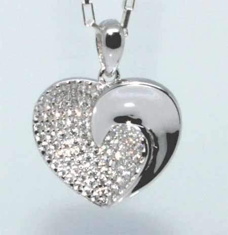 Prívesok srdca vyrobený zo striebra 925/000. Srdiečko je ozdobené zirkónmi. Povrch prívesku je porodiovaný čo mu dodáva jasnú farbu a lesk podčiarknutou žiarivými zirkónmi. Srdce má rozmer 14x16mm. Očkom pre zavesenie prívesku možno pretiahnuť strieborná retiazka s priemerom do 2,0 mm.