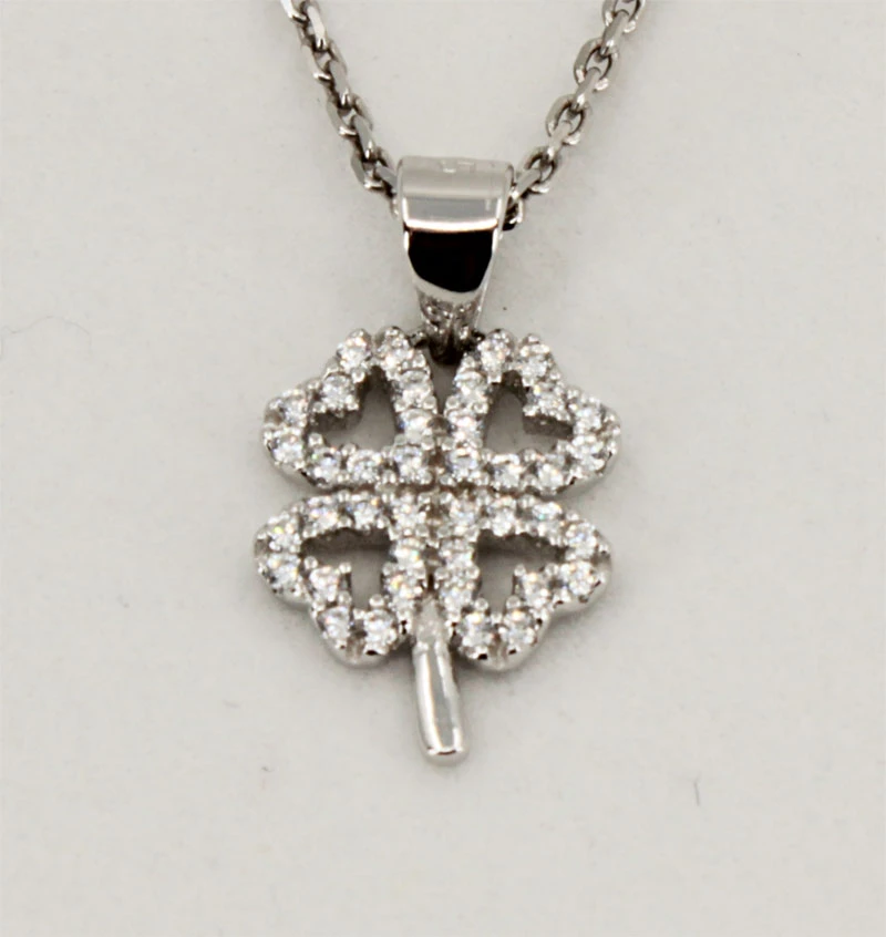 Strieborný prívesok na retiazku štvorlístok ozdobený prvotriednymi zirkónmi. Prívesok je vyrobený zo striebra rýdzosti 925/1000. Povrch prívesku je porhodiovaný, úprava rhodiovaním zvyšuje odolnosť povrchu prívesku proti poškodeniu a zaručuje dlhodobý bezchybný vzhľad šperku. Rozmer prívesku 14x11mmmm. Závesným očkom na prívesku je možné prevliecť striebornú retiazku s priemerom do 2,5mm.