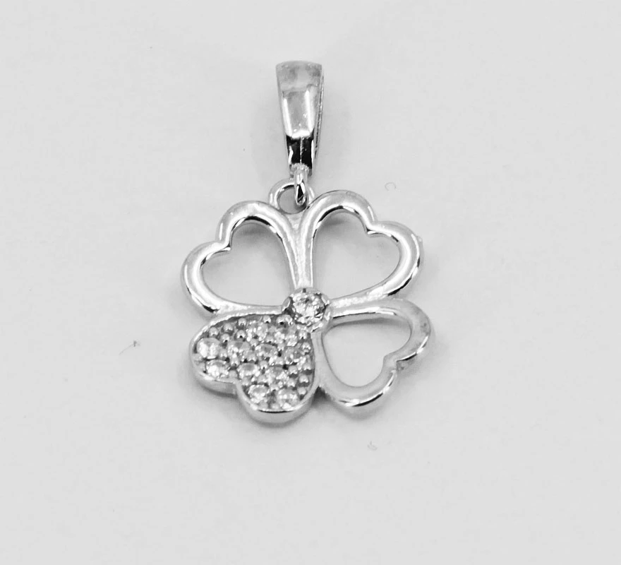 Strieborný prívesok na retiazku štvorlístok ozdobený prvotriednymi zirkónmi. Prívesok je vyrobený zo striebra rýdzosti 925/1000. Povrch prívesku je porhodiovaný, úprava rhodiovaním zvyšuje odolnosť povrchu prívesku proti poškodeniu a zaručuje dlhodobý bezchybný vzhľad šperku. Rozmer prívesku 13x12mmmm. Závesným očkom na prívesku je možné prevliecť striebornú retiazku s priemerom do 1,5mm.