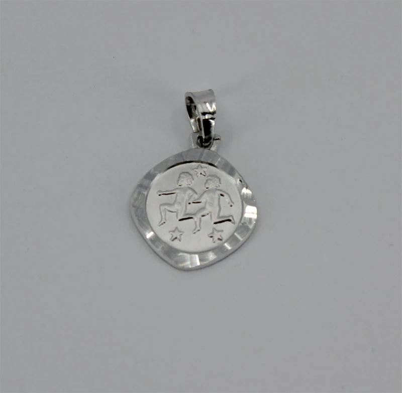 Prívesok na krk so znamením Blíženci (22.5 - 21.6). Prívesok je vyrobený zo striebra 925/1000. Povrch prívesku je kombinácia mat/lesk, plastické znamenie je matné orámované lešteným okrajom. Prívesok má porhodiovaný povrch. Úprava povrchu rhodiovania dodáva prívesku jasnú farbu s leskom a súčasne zamedzuje prirodzenej oxidácii striebra. Porhodiovaný povrch prívesku je tiež odolnejší voči poškriabaniu, šperk si tak uchová po dlhú dobu bezchybný vzhľad. Závesným očkom na znamenie je možné prevliecť retiazku s priemerom do 3,0mm. Celková "výška" prívesku vrátane závesného oka 20mm, rozmer ozdoby 12x12mm.