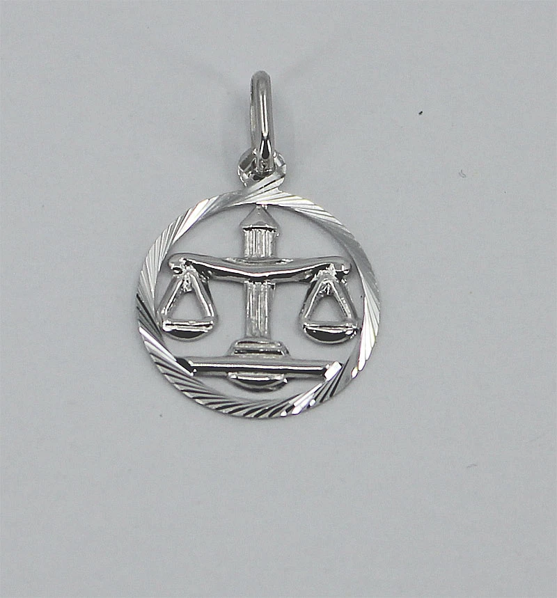 Prívesok na krk so znamením Váhy (23.9 - 23.10). Prívesok je vyrobený zo striebra 925/1000. Povrch prívesku je leštený. Prívesok má porhodiovaný povrch. Úprava povrchu rhodiovania dodáva prívesku jasnú farbu s leskom a súčasne zamedzuje prirodzenej oxidácii striebra. Porhodiovaný povrch prívesku je tiež odolnejší voči poškriabaniu, šperk si tak uchová po dlhú dobu bezchybný vzhľad. Závesným očkom na znamenie je možné prevliecť retiazku s priemerom do 3,0mm. Celková "výška" prívesku vrátane závesného oka 22mm, priemer ozdoby s váhou 15mm.