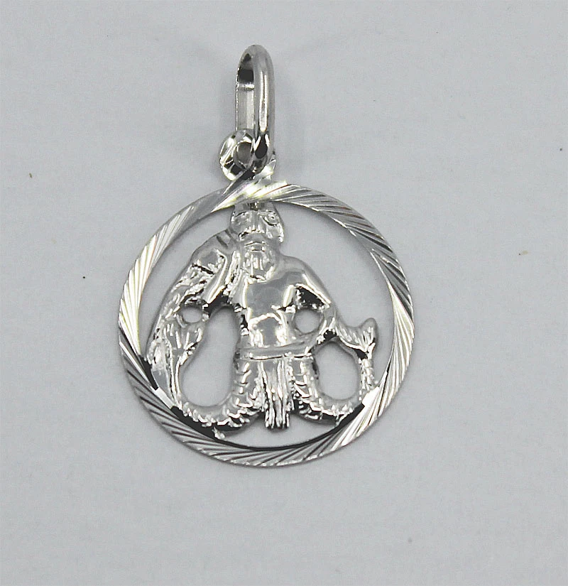 Prívesok na krk so znamením Vodnár (21.1 - 20.2). Prívesok je vyrobený zo striebra 925/1000. Povrch prívesku je leštený. Prívesok má porhodiovaný povrch. Úprava povrchu rhodiovania dodáva prívesku jasnú farbu s leskom a súčasne zamedzuje prirodzenej oxidácii striebra. Porhodiovaný povrch prívesku je tiež odolnejší voči poškriabaniu, šperk si tak uchová po dlhú dobu bezchybný vzhľad. Závesným očkom na znamenie je možné prevliecť retiazku s priemerom do 3,0mm. Celková "výška" prívesku vrátane závesného oka 22mm, priemer ozdoby s vodnárom 15mm.