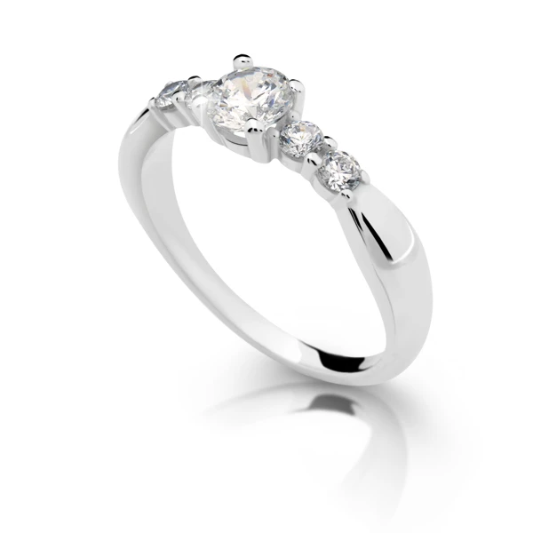 Strieborný prsteň so zirkónmi zo striebra 925/000. Povrch prstienka je porodiovaný. Nanesenej ródium dodáva prsteňa jasnú farbu a lesk. Obrúčka prstienka je široká 3,4 mm, priemer ozdoby so zirkónom 5,0 mm. Prstienok je možné použiť ako zásnubný.