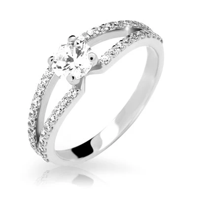Strieborný prsteň so zirkónmi zo striebra 925/000. Povrch prstienka je porodiovaný. Nanesenej ródium dodáva prsteňa jasnú farbu a lesk. Obrúčka prstienka je široká 2,5 mm, priemer ozdoby so zirkónom 5,0 mm. Prstienok je možné použiť ako zásnubný.