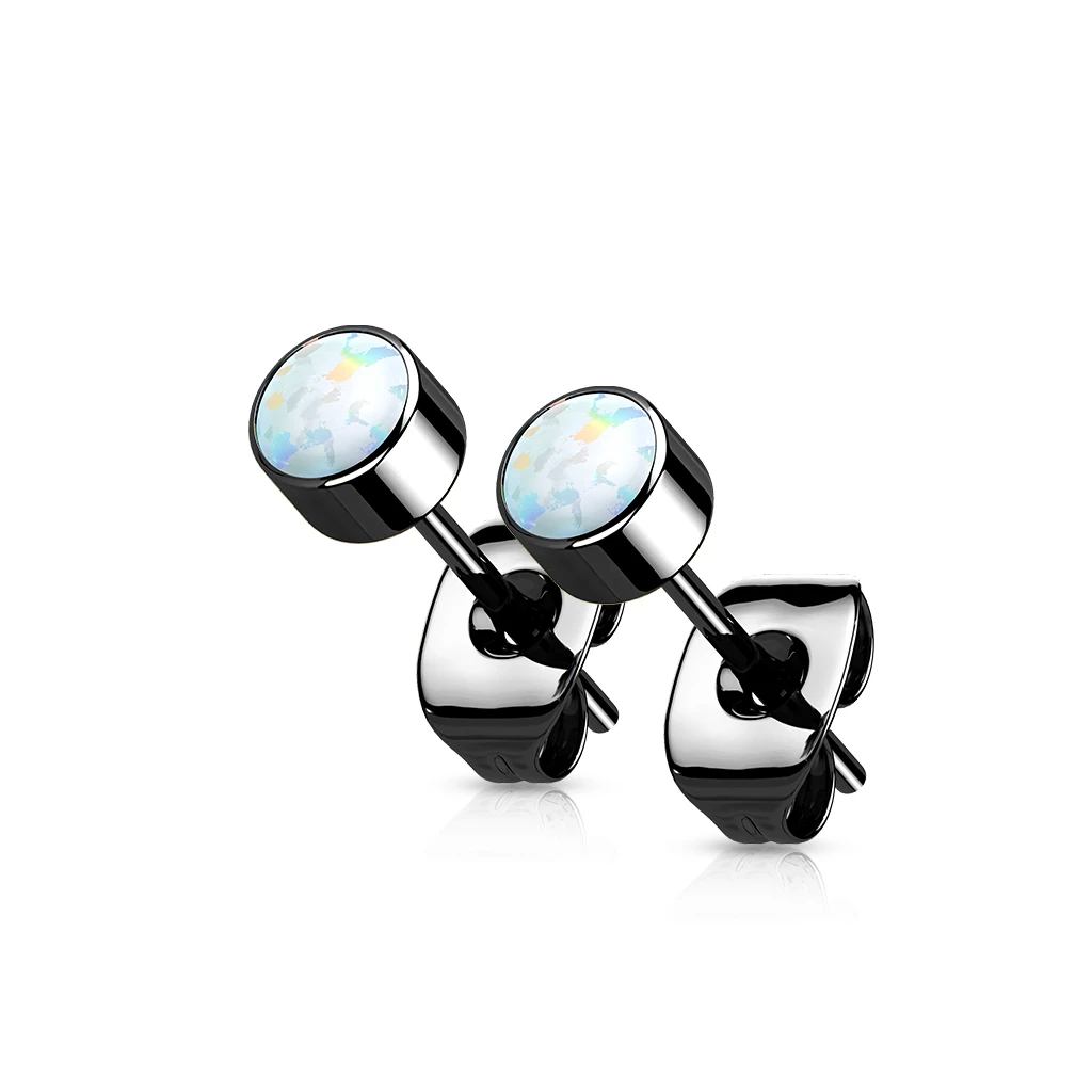 Náušnice kôstky vyrobené z titánu. Náušnice sú ozdobené syntetickým opálom. Priemer náušníc 3mm. Zapínanie náušníc je na puzetkách. Driek náušníc má priemer 0,7 mm, dĺžka drieku 10 mm. Uvedená cena platí za pár.