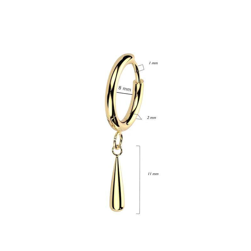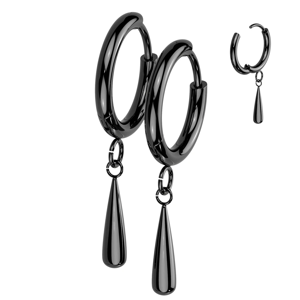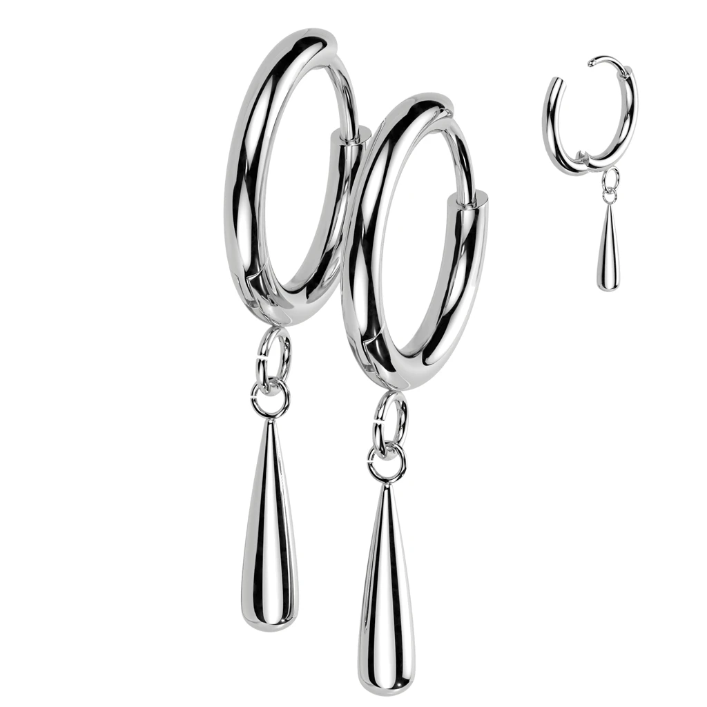 Náušnice visiace vyrobené z titánu 6AL-4V-ELI ASTM F-136, ktorý je bežne využívaný pri výrobe telových implantátov. Povrch náušníc je leštený. Vnútorný priemer náušníc 8mm, vonkajší priemer náušníc 12mm. Celková dĺžka náušníc 25mm. Náušnicové zapínanie je kĺbové. Uvedená cena platí za pár náušníc.