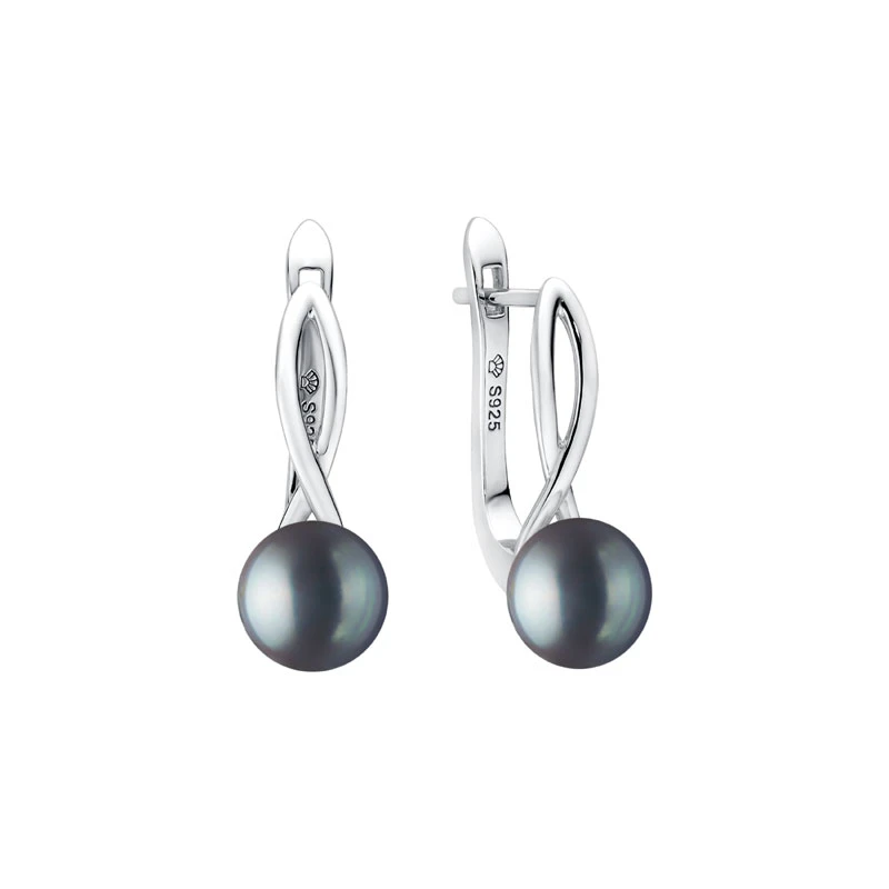 Visiace náušnice ozdobené riečnymi perlami. Náušnice sú vyrobené zo striebra 925/1000. Povrch náušníc je porhodiovaný. Nanesené ródium dodáva náušniciam jasnú farbu s leskom, chráni povrch proti poškriabaniu a zamedzuje prirodzenej oxidácii striebra. Náušnice tak budú mať po dlhú dobu bezchybný vzhľad. Dĺžka náušníc 25 mm. Priemer riečnych perál 7 mm. Náušnicové zapínanie je na ruský patent.