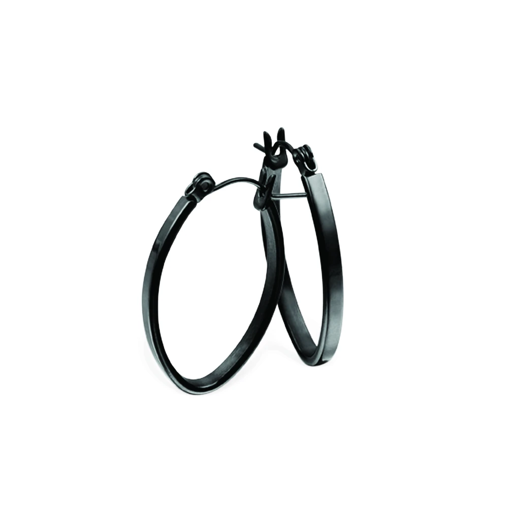 Náušnice z chirurgickej ocele visiace. Povrch náušníc je leštený barvený technológiou PVD. Výška náušníc 25mm, šírka 2,5mm. Náušnicové zapínanie je na francúzsky zámok.