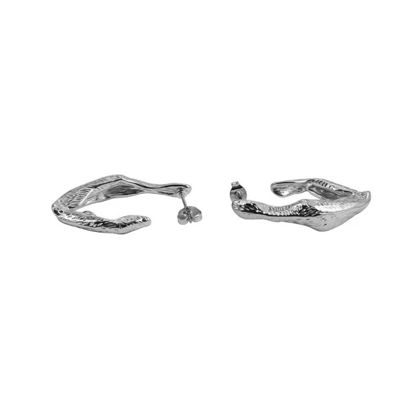 Náušnice visiace vyrobené z chirurgickej ocele. Povrch náušníc je leštený so vzorom a to na vonkajšej aj vnútornej strane. Netradičné visiace náušnice dlhé 40mm. Náušnicové zapínanie je na puzety.
